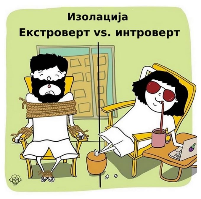 А кога овој проблем ќе заврши и опасноста ќе помине, верувам дека сите ќе се видиме на журка – и екстровертите и интровертите. За интровертите веројатно тоа ќе биде доволно за следните шест месеци 🙂